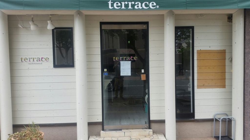 美容室 Terrace hair & botanical ウインドシート 壁面テントサイン WORKS DETAIL お客様名 Terrace hair & botanical 施工場所 福岡市早良区姪浜 業種 美容室 カテゴリー 竣工年月 2016年8月