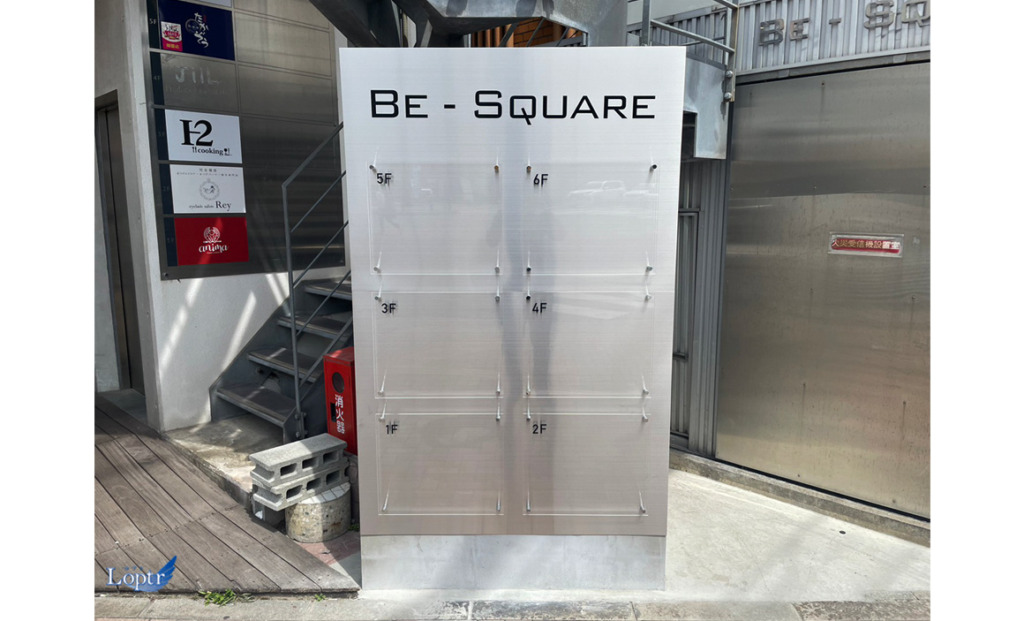 #7967:インフォメーション製作施工(BE-SQUARE様) WORKS DETAIL お客様名 BE-SQUARE様 施工場所 福岡市中央区 業種 ショップ・店舗 カテゴリー カッティングシート自立看板/野立看板その他 竣工年月 2023年3月 BE-SQUARE様よりテナント様用インフォメーション製作施工を承りました。 【施工前】