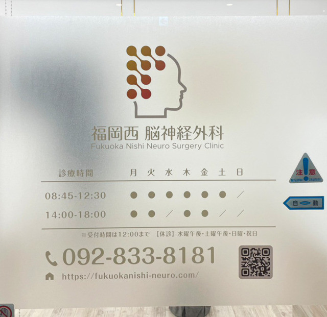 #7388:院サイン製作施工(福岡西脳神経外科様) WORKS DETAIL お客様名 福岡西脳神経外科様 施工場所 福岡市早良区 業種 病院・クリニック カテゴリー 各種切文字(カルプ/アルミ複合板/アクリル/金属) 竣工年月 2023年5月 福岡西脳神経外科様より看板サイン製作施工を承りました。 【院内受付サイン】 【入口ガラスサイン】
