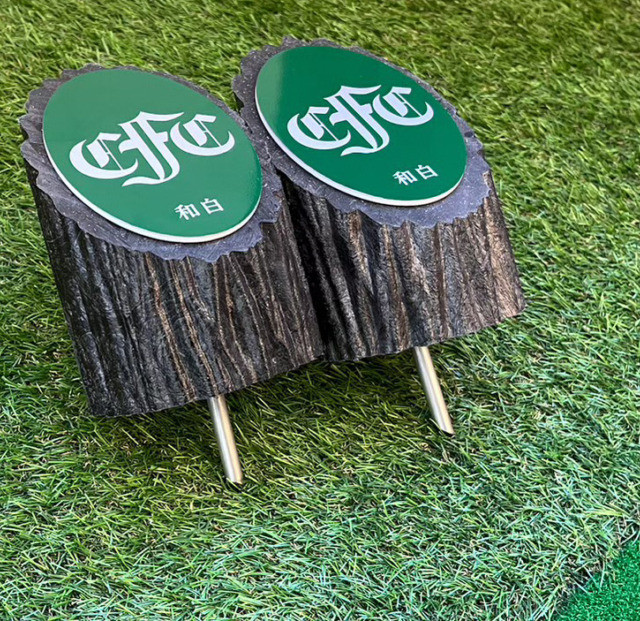 #8407:オリジナルティーマーク製作 WORKS DETAIL お客様名 ゴルフ場 施工場所 弊社工場 業種 ゴルフ場 カテゴリー 擬木アルミ複合板+インクジェット出力ゴルフ場内表示板 竣工年月 2023年3月 ティーマーク承りました。