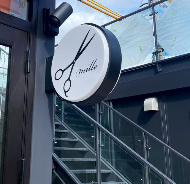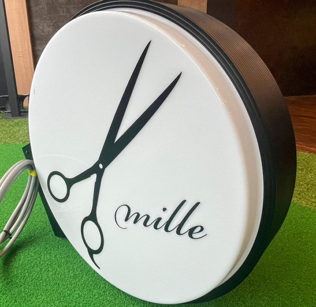 #9006:電照サイン施工(ミル様) WORKS DETAIL お客様名 ミル様 施工場所 福岡市南区 業種 美容室 カテゴリー 電照サイン(正面発光/背面発光/側面発光)ポール看板/袖看板 竣工年月 1000円カット専門店「ミル」様電照サイン施工を承りました。 【製作中】