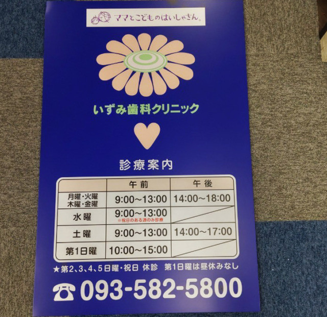 #8826:サイン製作(いずみ歯科クリニック様) WORKS DETAIL お客様名 いずみ歯科クリニック様 施工場所 北九州市小倉北区 業種 病院・クリニック カテゴリー インクジェット出力アルミ複合板+インクジェット出力 竣工年月 2023年5月 いずみ歯科クリニック様よりサイン製作を承りました。