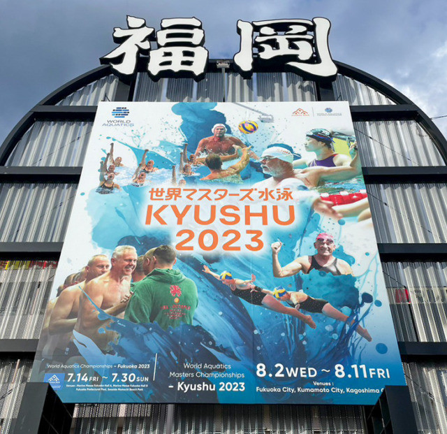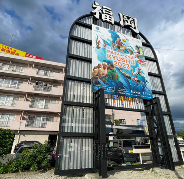 世界水泳看板を世界マスターズ水泳選手権2023九州大会ver.へ再度設置させていただきました!