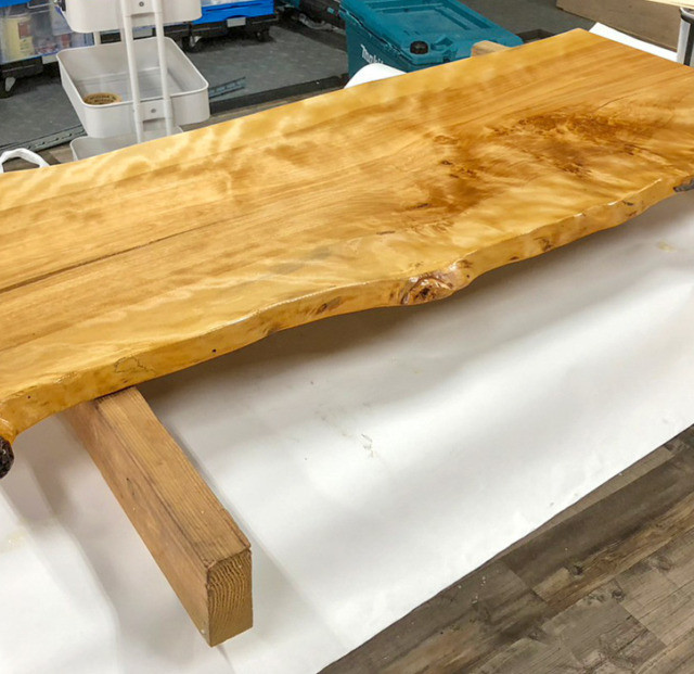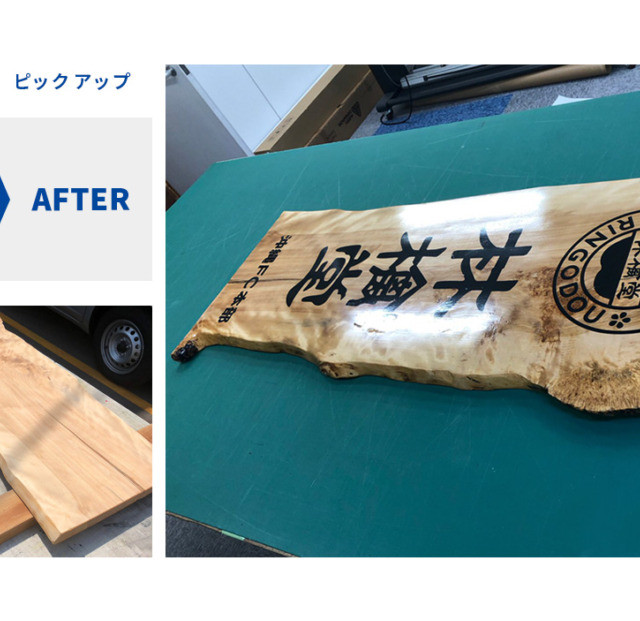 木看板製作の際には、節目など、凹凸を取り除く下処理後、塗装を数回繰り返しツルツルした施工面に加工を施しております。