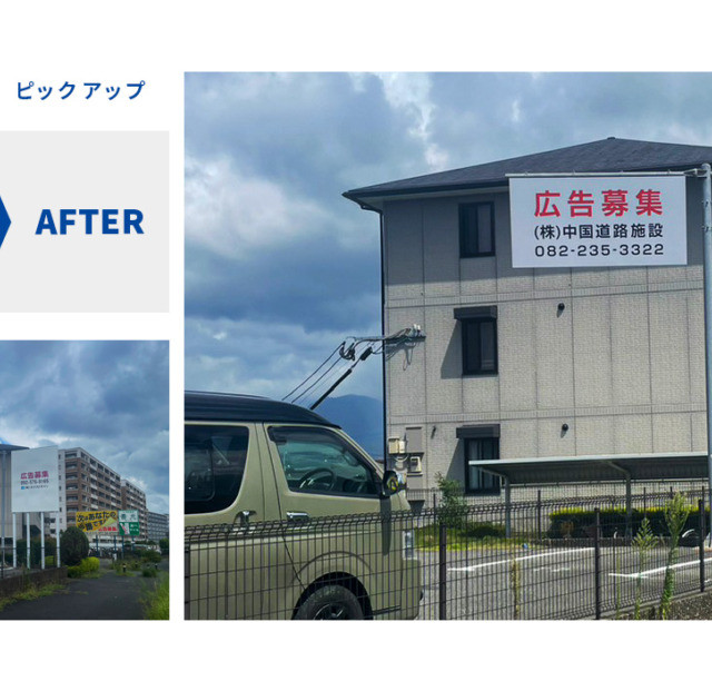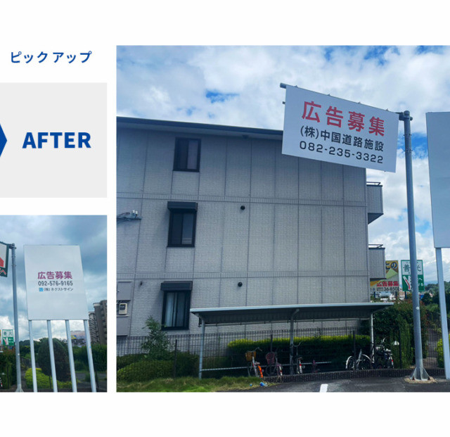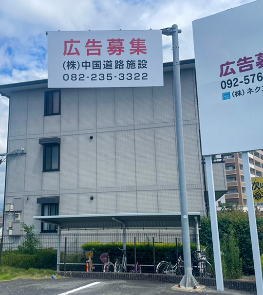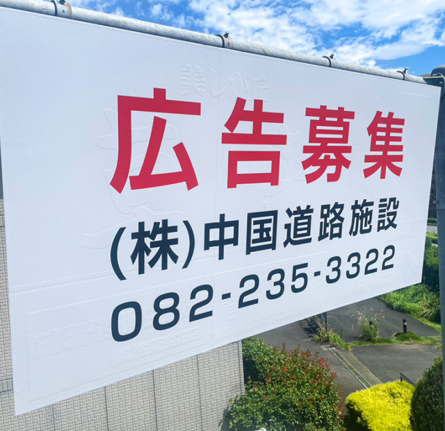 中国道路施設様より「広告募集」シート貼施工を承りました。