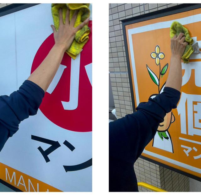 壁面看板、ガラス面のシート、電照、スポット、スタンド看板など