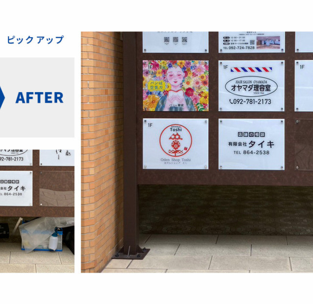 #9560:テナントサイン製作施工(おでんショップとし様) WORKS DETAIL お客様名 おでんショップとし様 施工場所 福岡市中央区 業種 オフィス・工場 カテゴリー インクジェット出力 竣工年月 2023年9月 赤坂パインマンション1F :おでんショップとし様より集合サインの製作施工を承りました。 【1階集合サイン】 【店舗サイン】 【左:施工前 右:施工完了】