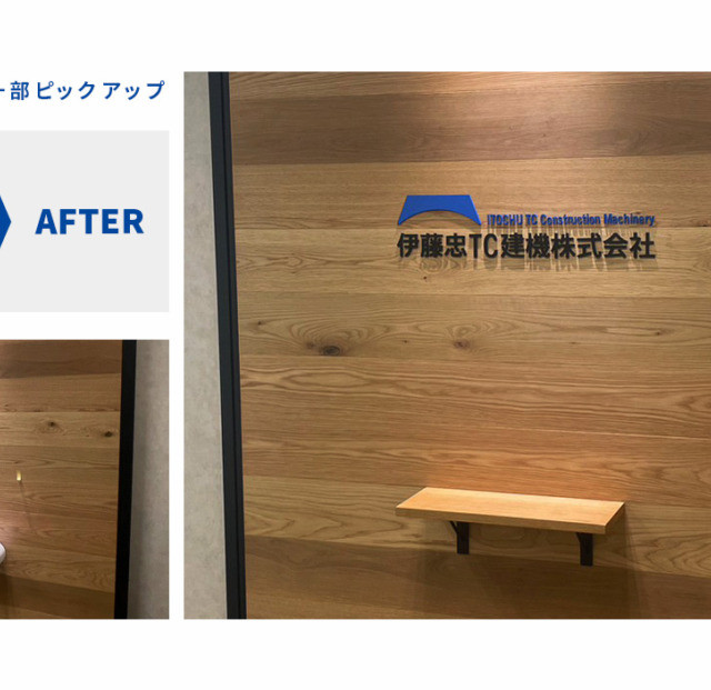 伊藤忠TC建機株式会社 福岡支店様よりオフィス受付サインの製作施工を承りました。