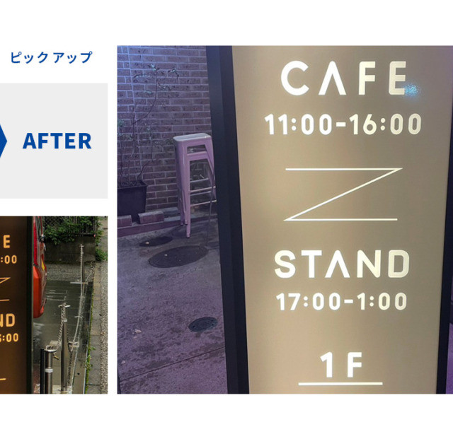 #9909:営業時間変更による板面修正(STAND BY ME様) WORKS DETAIL お客様名 STAND BY ME様 施工場所 福岡市 業種 飲食店 カテゴリー インクジェット出力カッティングシート 竣工年月 2023年11月 STAND BY ME様より営業時間変更による板面修正依頼を承りました。 【左:時間修正前 右:施工完了】