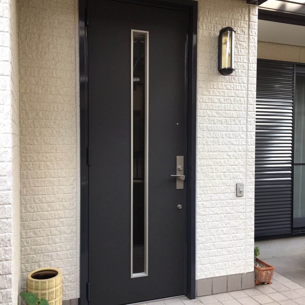 外壁リフォームされたお客様。玄関ドアの印象も変えたいという事で、選んで頂いたレザー調シートをバシッとキメてきました。オフィスのドアやテーブルなどの印象を変えたい時や高級感を出したいなど、最適なデザインのシートもご提案できます。お問合せはいつでもメールまたはお電話でご連絡下さい。