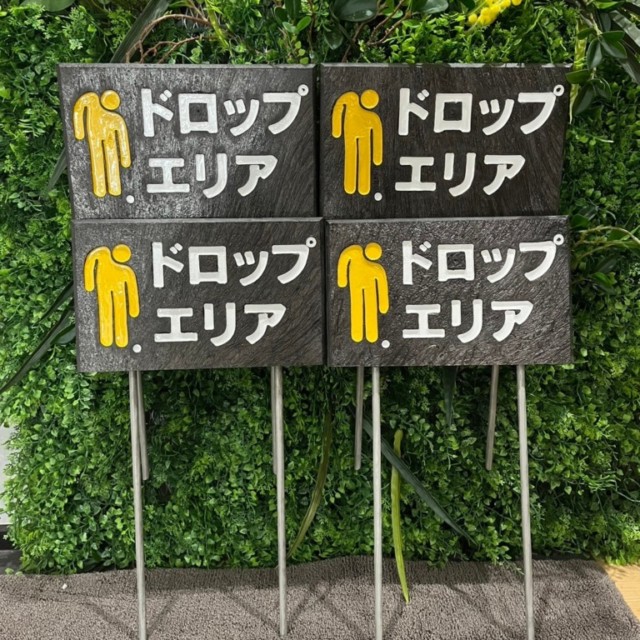 2024年3月、株式会社グロリア様のために、ゴルフ場のドロップエリアを示す表示板を製作しました。これらのサインは株式会社ロプトにて精密に製作され、ゴルフ場の特定のエリアを明確に示すためのものです。デザインは、明瞭かつ目立つ黄色のアイコンを特徴とし、読みやすいフォントで「ドロップエリア」と記載されています。