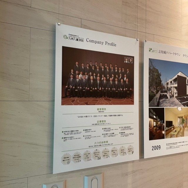 パネルシートの貼替工事は、九州八重洲様のビジョンと企業理念を明確に伝えるための重要な作業でした。新しいシートは鮮明で見やすく、訪れる皆様に対して企業の信頼性と専門性を強調します。