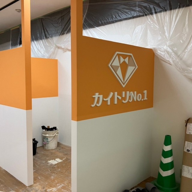カイトリNO.1 イオン二日市店様のオープンに伴い、店内外の看板の製作・施工を担当しました。看板のデザインは鮮やかなオレンジと白を基調とし、視認性とデザイン性を兼ね備えたものとなっています。
