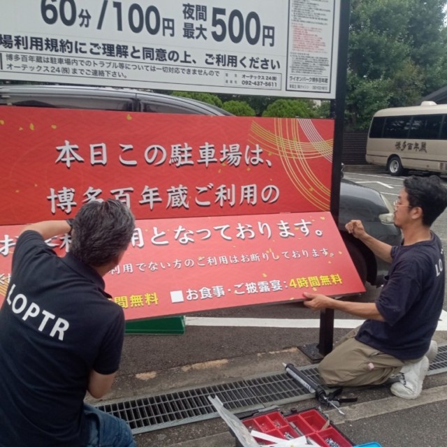 新しい駐車場サインにより、博多百年蔵様のお客様が駐車場を簡単に見つけることができ、安心して駐車できる環境が整いました。また、明確な案内により、他の利用者との混乱を避けることができます。