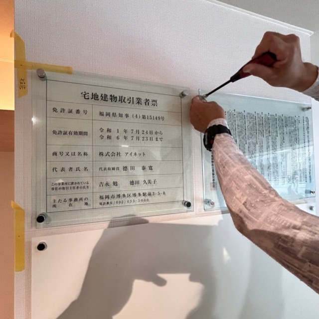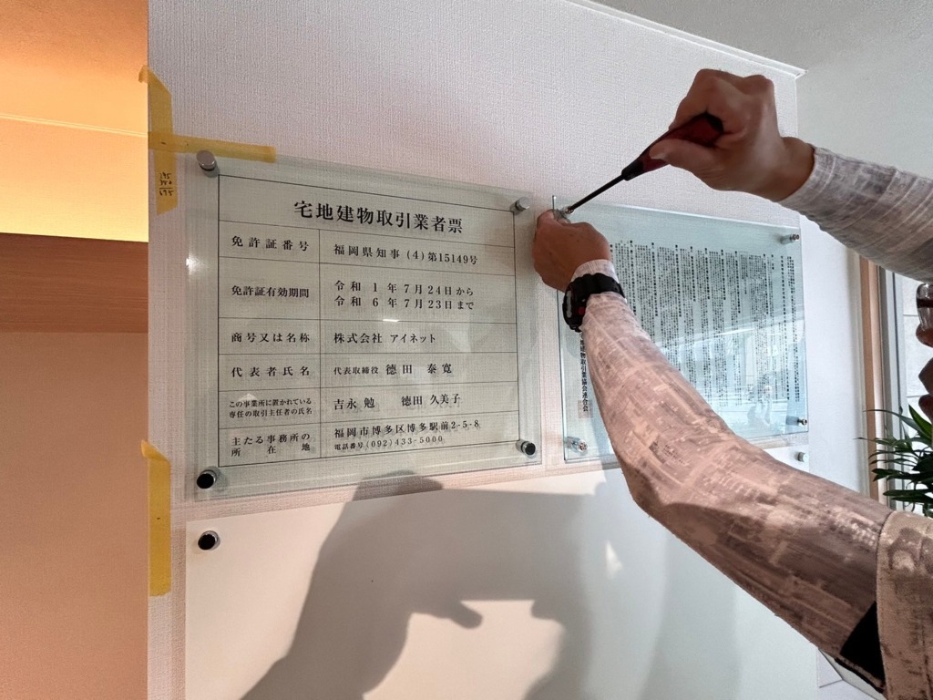 2024年7月10日、福岡市博多区に位置するアイネット博多駅前店様のサイン製作施工を完了しました。アルミ複合板にIJ出力シート、ガラスアクリル、カッティングシートを使用し、店内外のサインを新調しました。