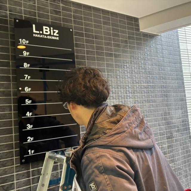 2024年3月5日、福岡市博多区奈良屋町にて、(仮称)博多駅前1丁目プロジェクト様のサイン施工を行いました。今回のプロジェクトでは、ステンレス切り文字を使用したサインを製作・設置し、建物全体に洗練された印象を与えるデザインを実現しました。