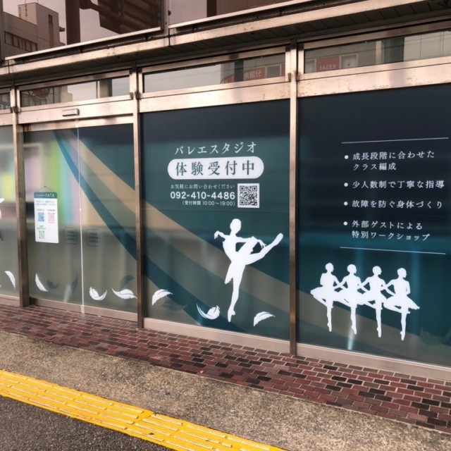 この度、FATAバレエスタジオ様ガラス面シート製作施工を行いました。