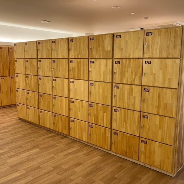 このプロジェクトでは、ステンレスフレームの切り文字や、木目調の温かみあるシナ合板の切り文字加工を使用し、施設全体に洗練されたデザイン性をプラスしました。さらに、木目シートを施し、統一感と高級感を演出しました。