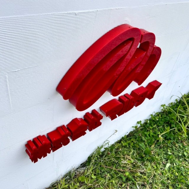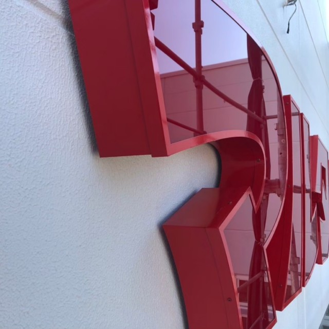 施設の壁面に設置された電照サインのリニューアルを行い、昼夜問わず視認性が高く、洗練されたデザインを実現しました。特に、夜間に赤く光るサインがブランドの存在感を一層際立たせます。耐久性と美観を兼ね備えた仕上がりとなっています。