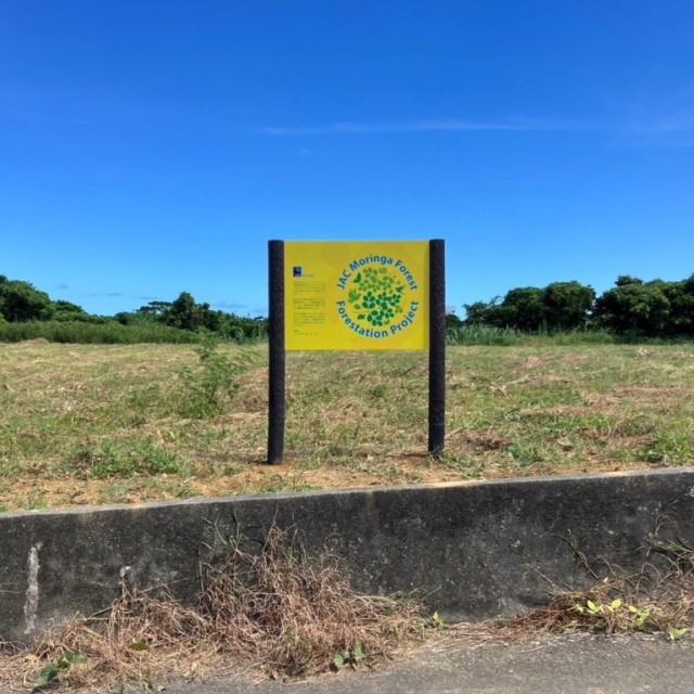 今回のプロジェクトでは、環境への配慮と視認性の高さを両立させたデザインと、耐久性に優れた素材を使用しました。アルミ複合板にUVラミネート加工を施したインクジェット出力シートを貼りつけることで、紫外線や風雨による劣化を防止し、長期間鮮明な状態を維持することができます。