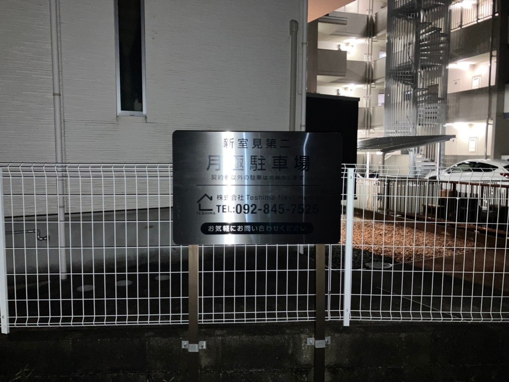 管理看板および駐車場看板のカッティングシート貼替を施し、情報の更新を行いました。