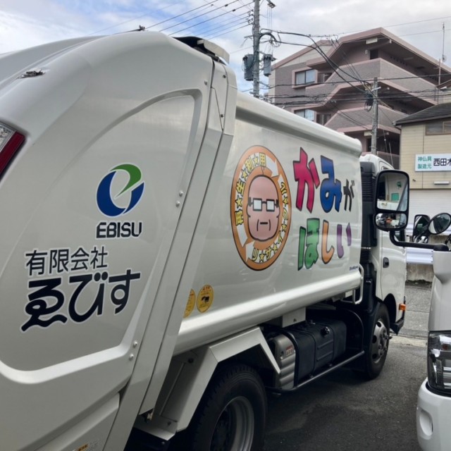 この度、有限会社ゑびす様からご依頼いただき、回収車ラッピングを行いました。