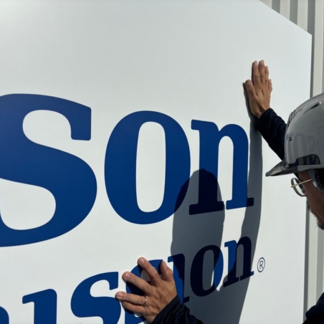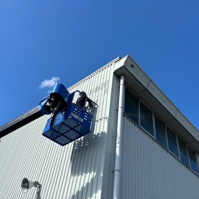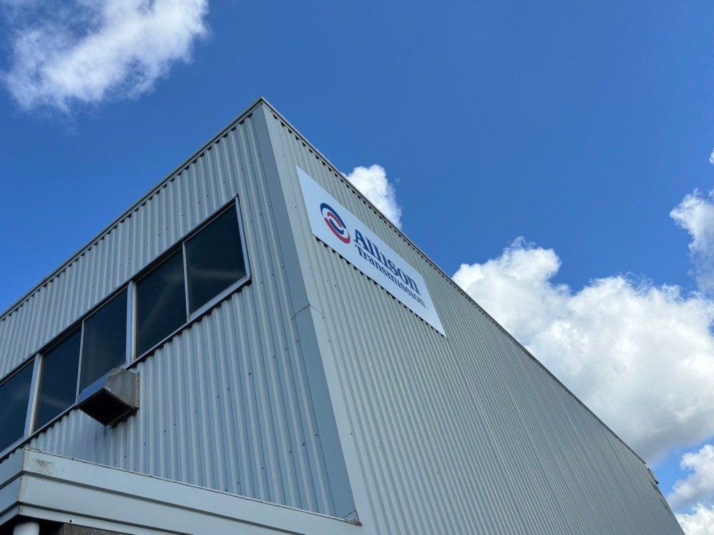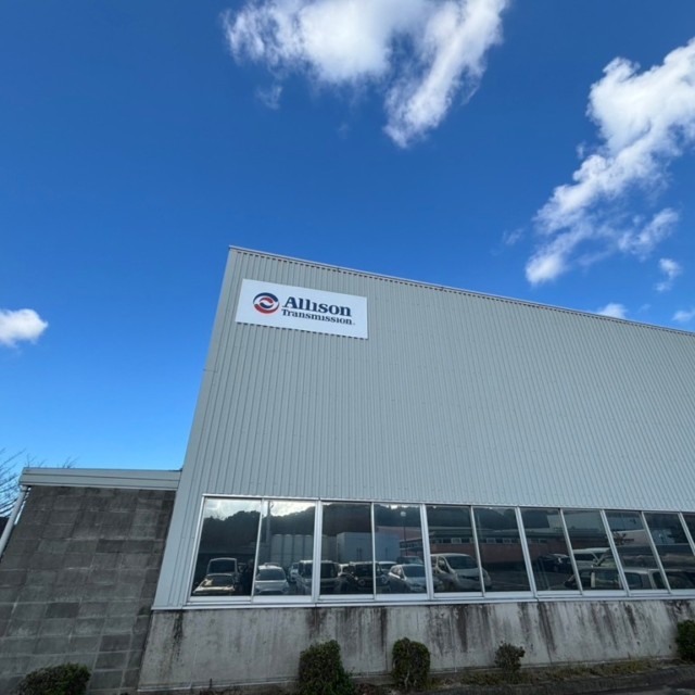 工場外壁に設置されたサインは、大型で遠くからでも視認性の高いデザインとなっております。 ロゴマークと「Allison Transmission」の文字を配置することで、企業の存在感をアピールしています。また、高所での作業につき、施工時には安全面に配慮しつつ、精密な位置合わせを行いました。
