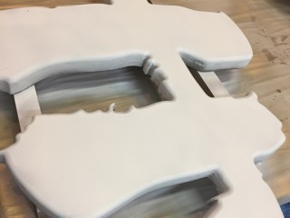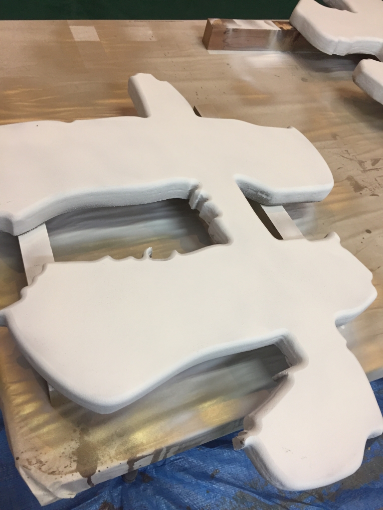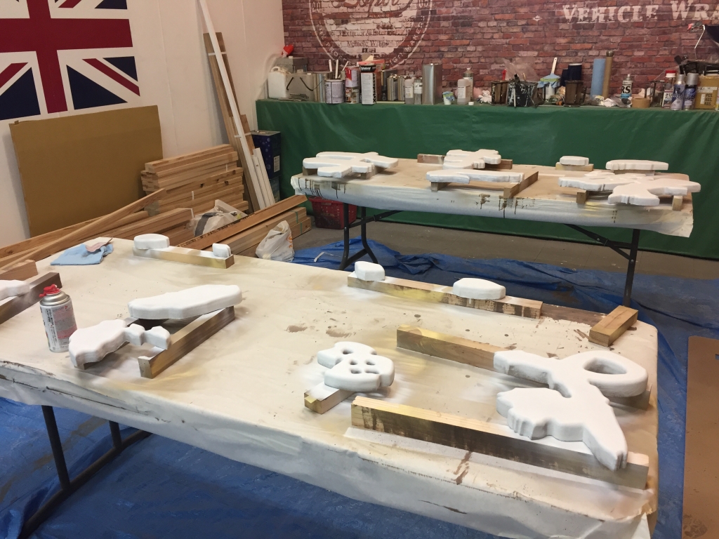 メインサインはアルミ複合板にリアテックの板面にルーター加工と手仕上げしたカルプ文字、アルポリ切文字、木枠。カルプ文字は手仕上げで面を整え、金色塗装にクリア塗装。