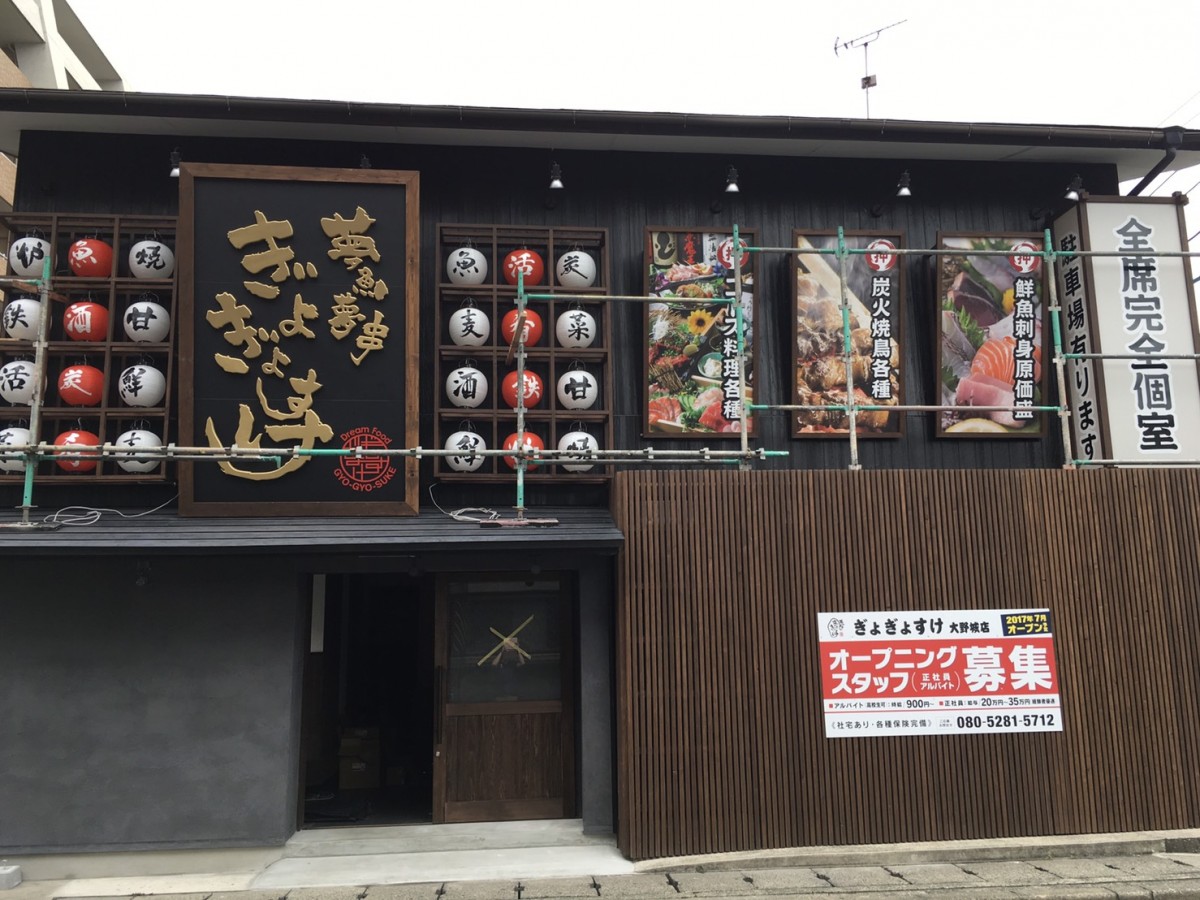 メインサイン左右には木枠に提灯、更にはLED内照の電照サインです。