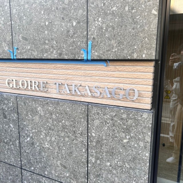 エントランス部分の館銘板には、ヘアライン仕上げのステンレス切り文字を採用しました。10mmの浮かし施工を施すことで、立体感と陰影の美しさを演出し、シンプルながらも高級感のあるデザインに仕上げています。ステンレス素材は耐久性・耐候性に優れており、長期間美しい状態を維持できる点も大きな特徴です。また、エントランス横のコンクリートウォールには、建物のデザインに調和するブラック仕上げのステンレス切り文字を配置し、落ち着いた雰囲気の中でしっかりと視認性を確保しました。