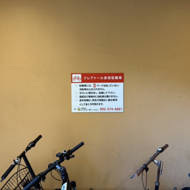福岡市中央区赤坂にあるクレアトール赤坂様の駐輪場の案内看板を製作しました。駐輪場の利用ルールを明確にし、利用者が適切に駐輪できるようにするための看板です。素材には耐久性のあるアルミ複合板を採用し、表面にはインクジェット出力シートを貼り、屋外対応のUVラミネート加工を施しています。これにより、雨風や紫外線による劣化を防ぎ、長期間にわたって鮮明な表示を維持できるようになっています。