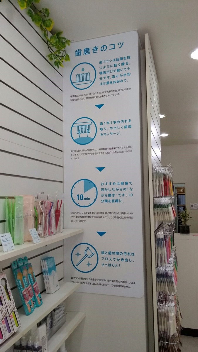 歯臓治療で有名なむらつ歯科さんに併設されているオーラルケア用品ショップのサイン施工です。