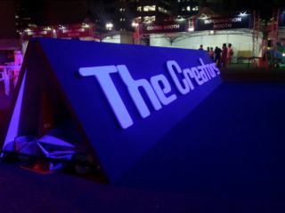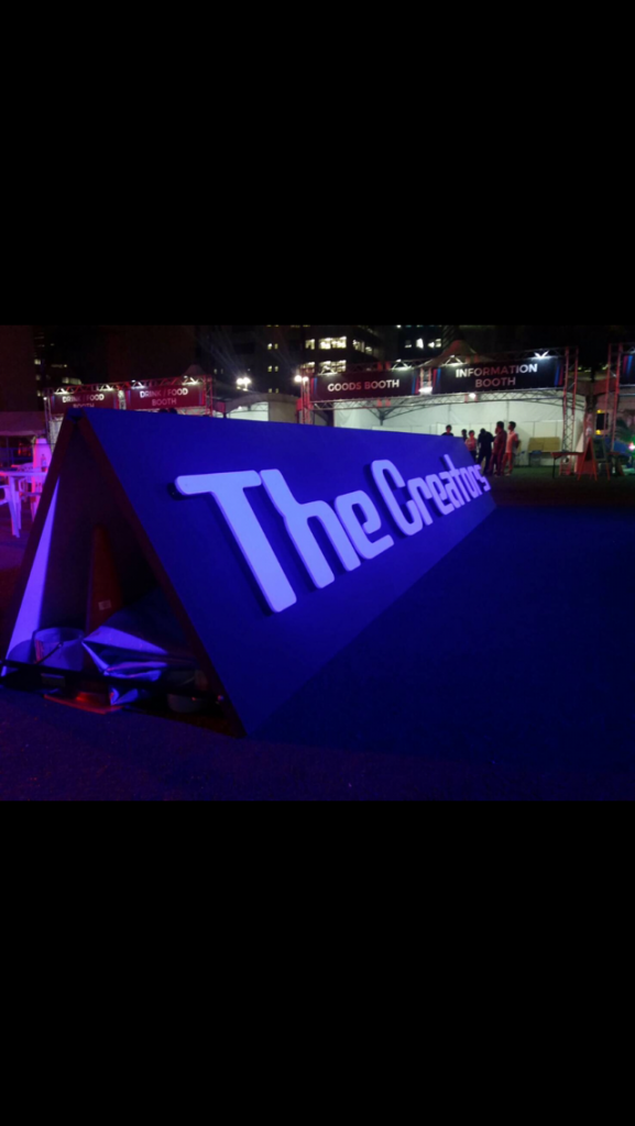 先日、福岡市役所広場で開催された最先端エンターテイメント体験型フェス、The Creatersメインサインのバックライトを施工しました。