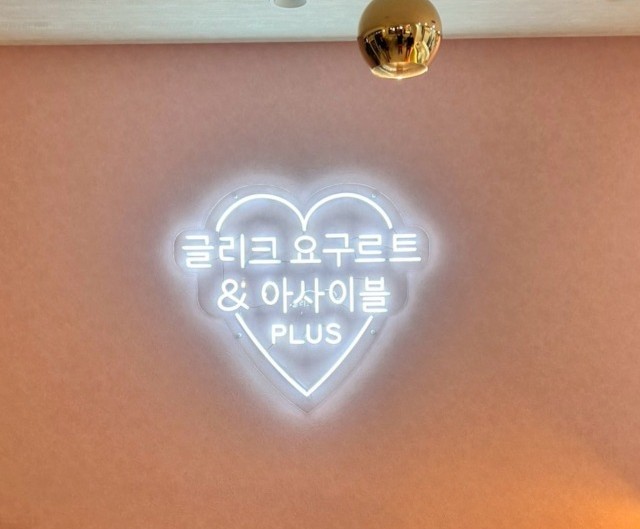 室内には、鮮やかなピンク色のLEDネオンサインを設置。
