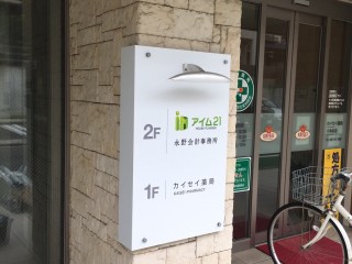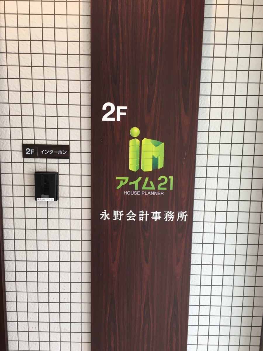 アイム21様の新社屋ビルのサイン施工第1弾。