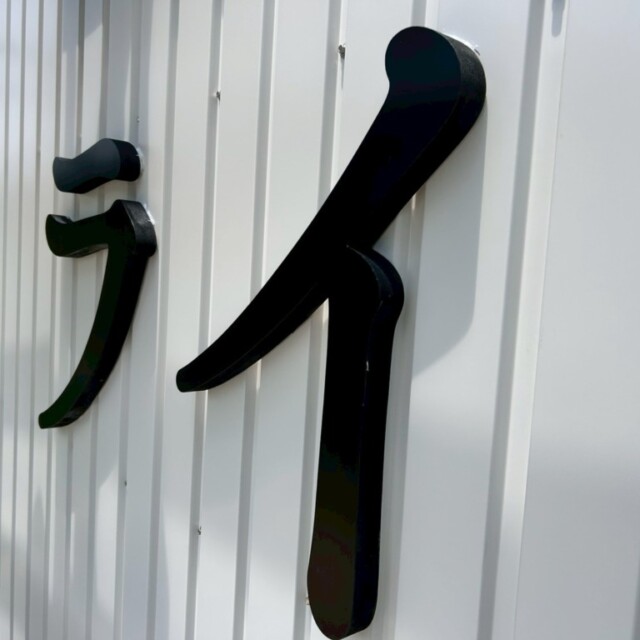 ロゴ部分は文字抜き加工を施し、背面に白の裏板をあてることで立体感と視認性を確保しました💡