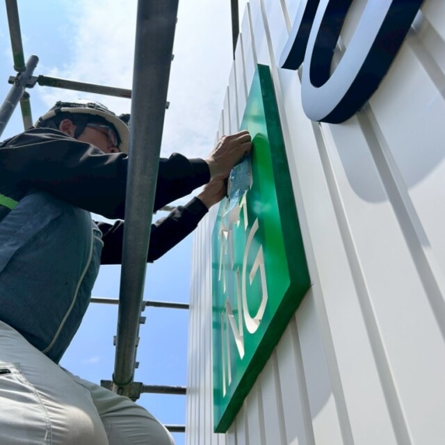 屋外でも耐久性があり、企業イメージをしっかりアピールできるサインとなっています!