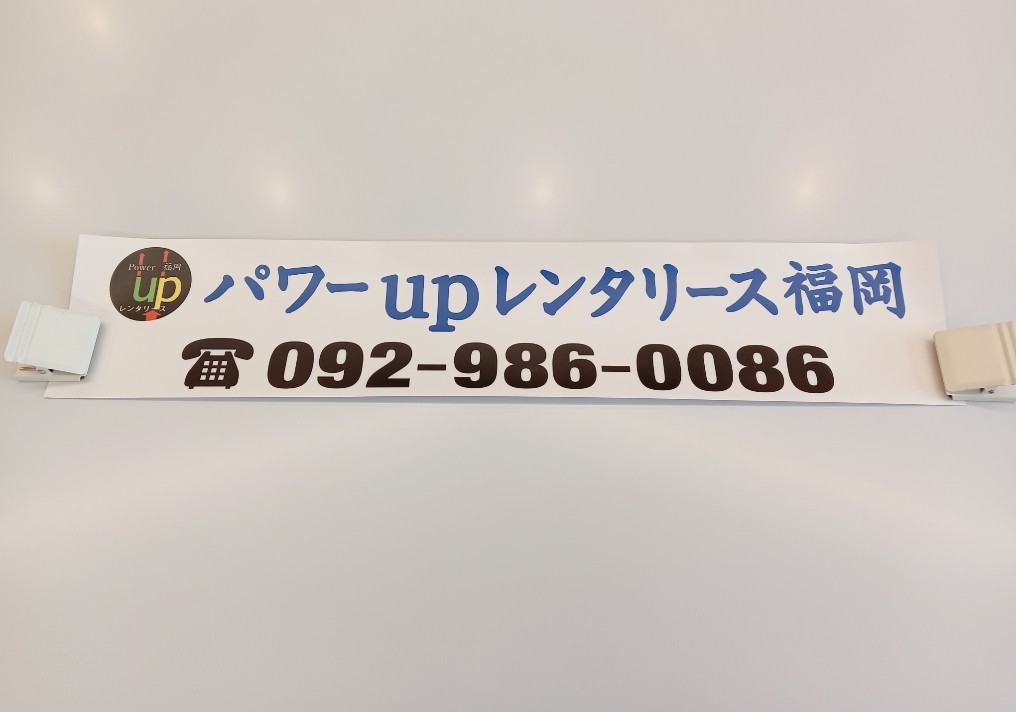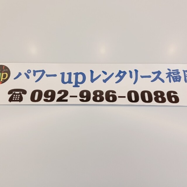 今回は、「パワーupレンタリース福岡」のロゴマークや社名・電話番号を