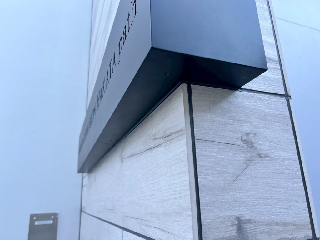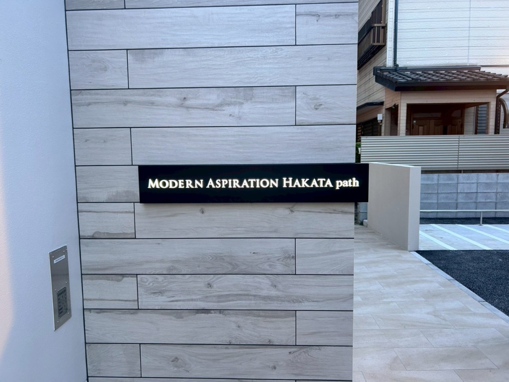 博多区美野島にて、新築物件「MODERN ASPIRATION HAKATA path」の館銘板サインを製作・設置いたしました。施工日は8月1日。
