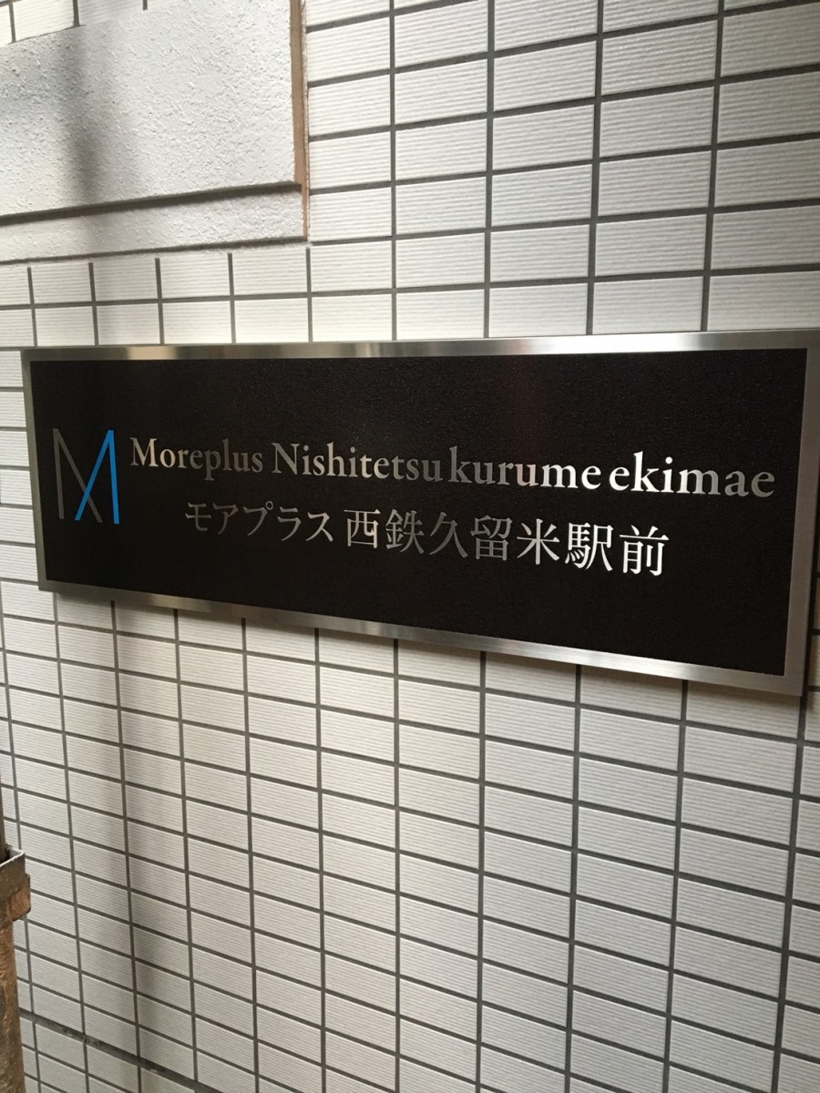 館銘板はエッチング。凸部はヘアライン加工、ロゴの一部は焼付塗装。お洒落。