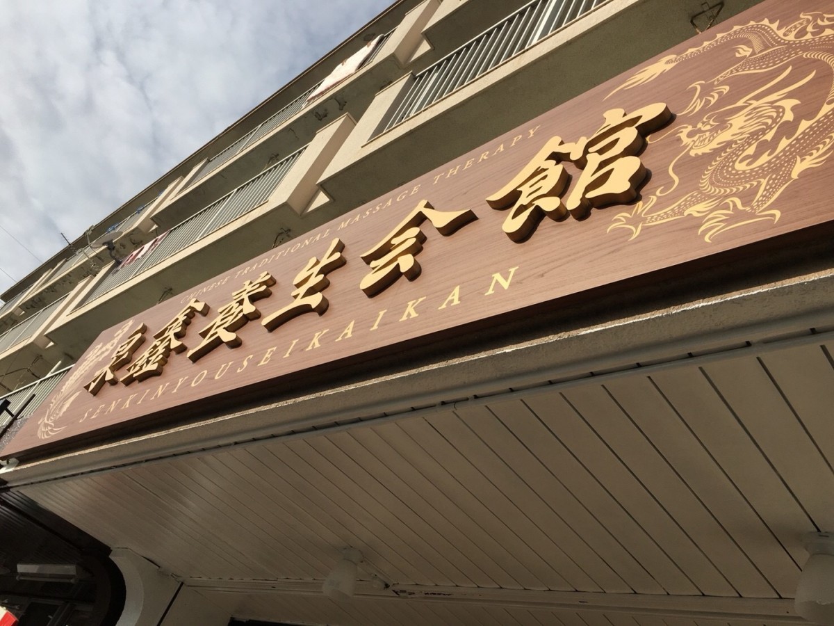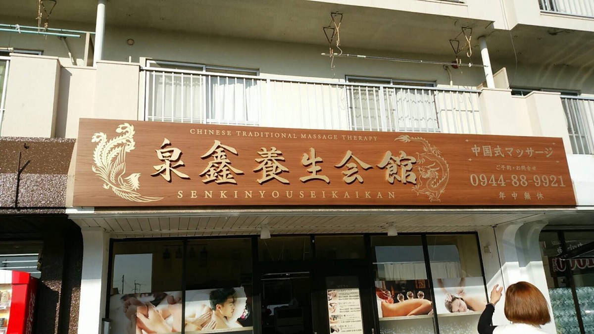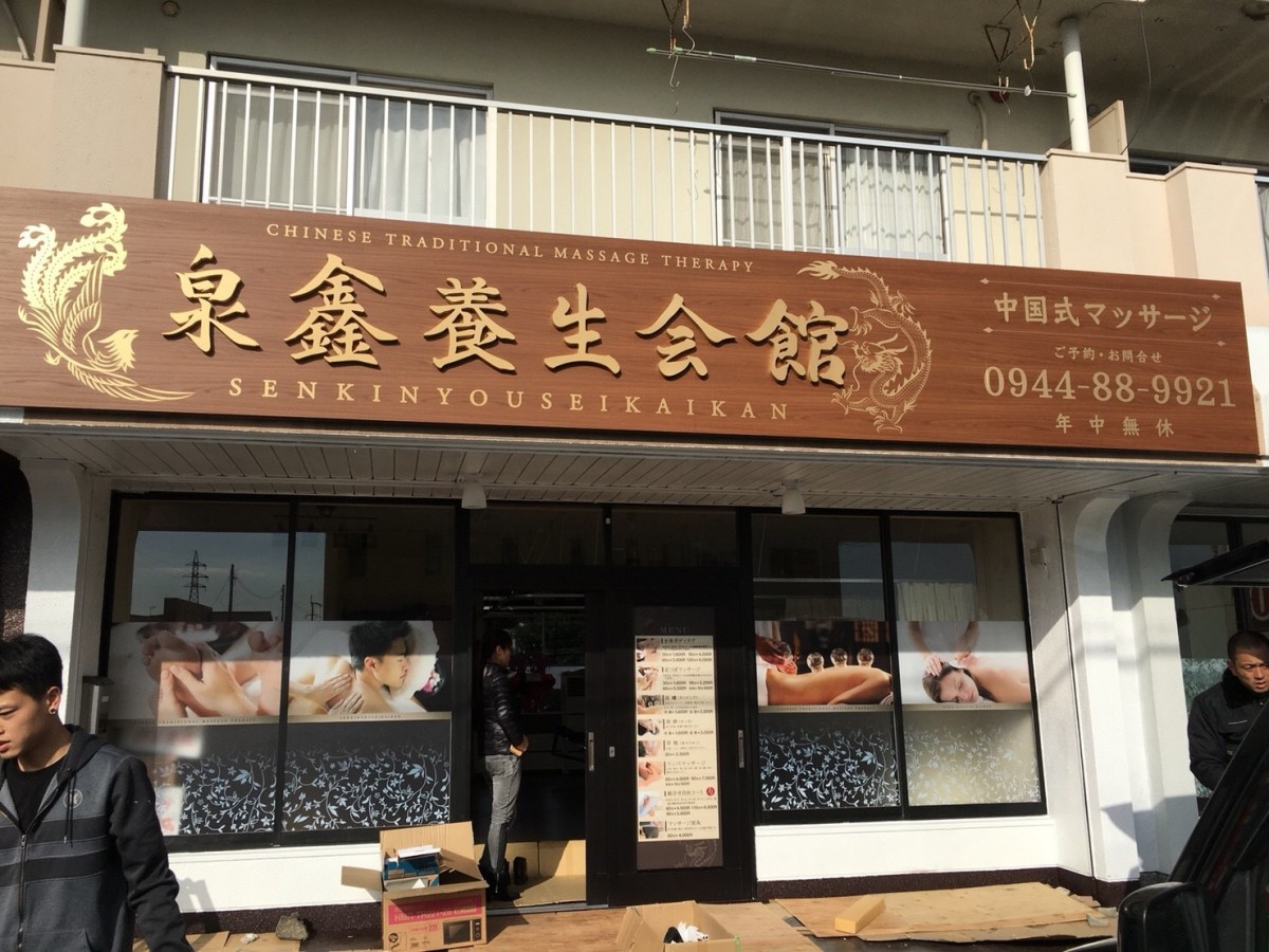 電話でのお問合せ頂いた泉鑫養生会館。中国の方がされてある中国式マッサージ店のファサードサインとガラス面シート施工です。