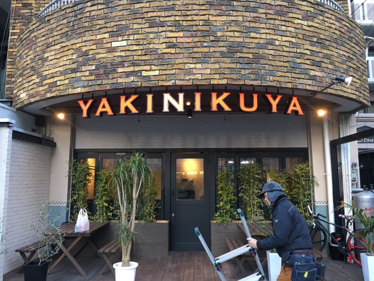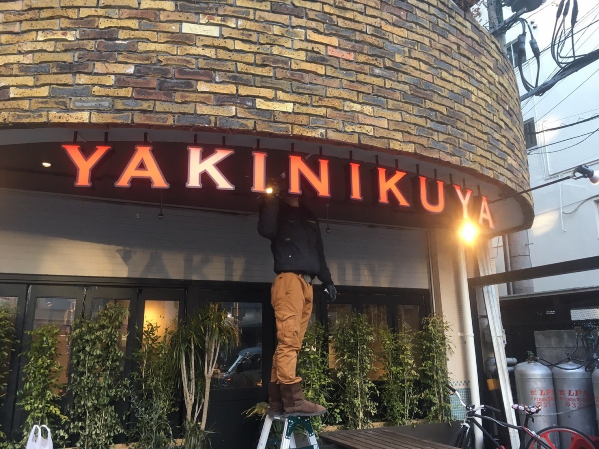 英字でYAKINIKUYAを提案しました!やきにくやさんですから。天吊の正面発光のLEDチャンネル電照サインで、インパクトあります。