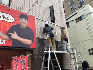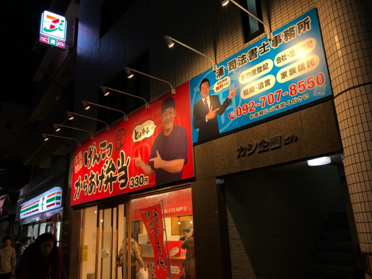 お隣のげんこつ唐揚げ様の看板とシンメトリーなデザインで、