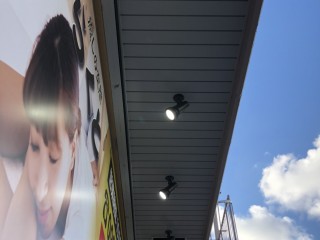 ガラス面には乳半シートを施工し、店内の灯がいい感じに照らしてます!