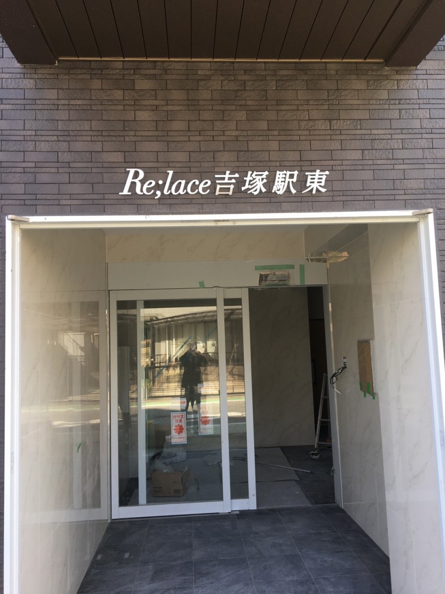 博多区吉塚のマンション、Re:lace吉塚駅東様のSUS切文字施工を行いました。