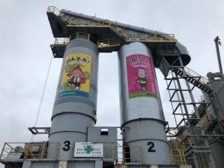 サイロへの貼り付け、高所作業車と足場を使い分けながらの作業でした。