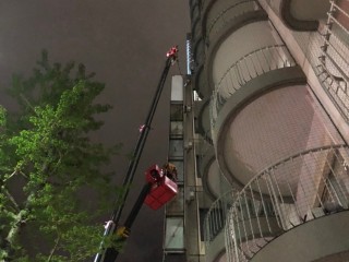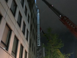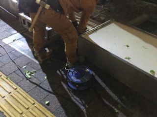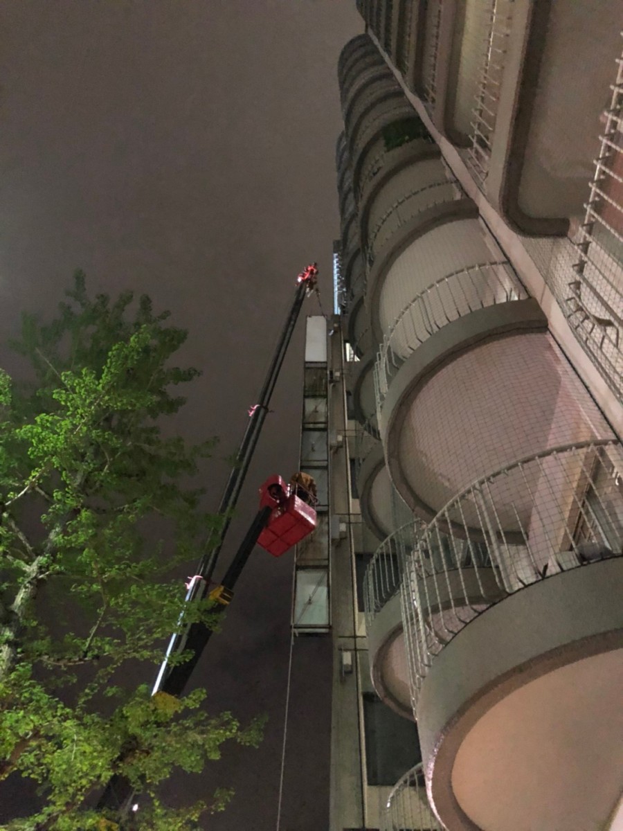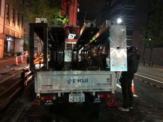 高所作業車を使用しての夜間作業。