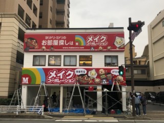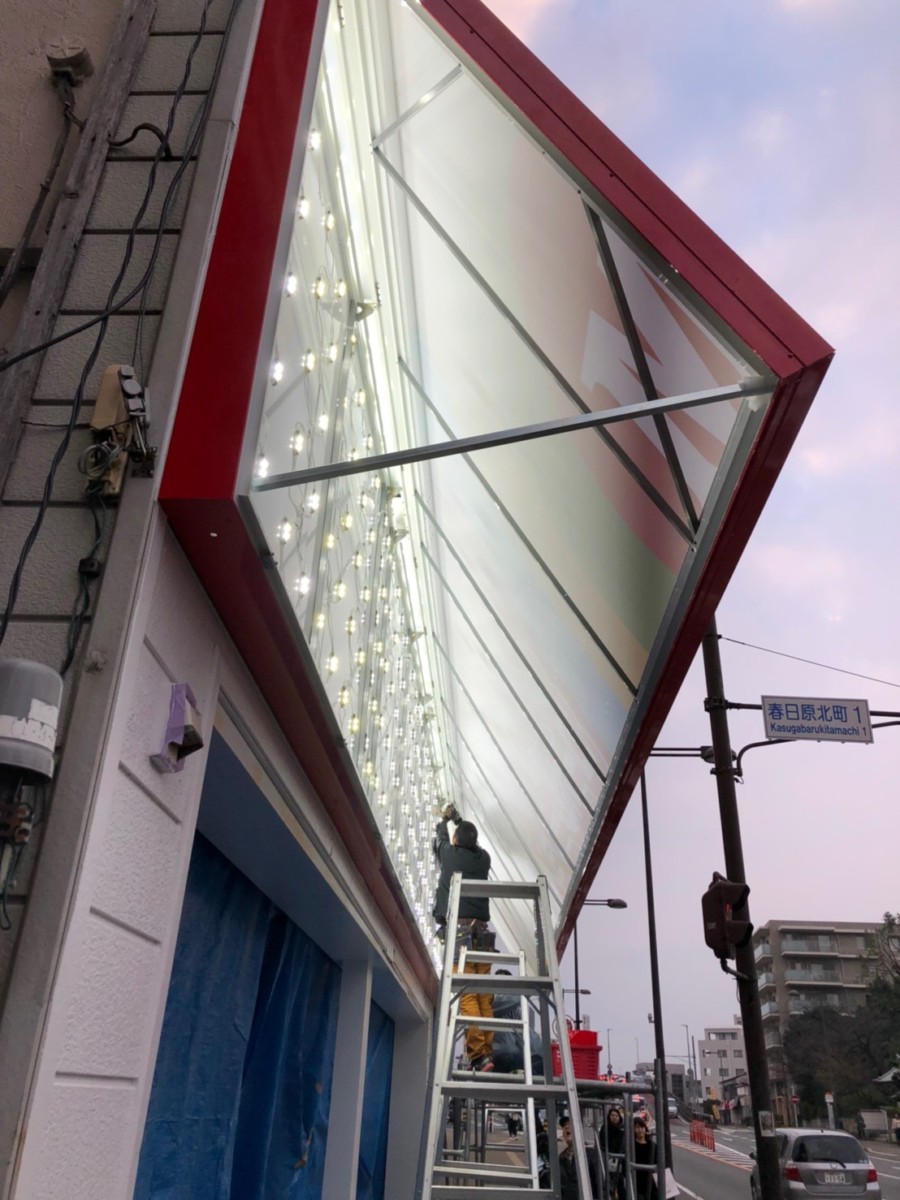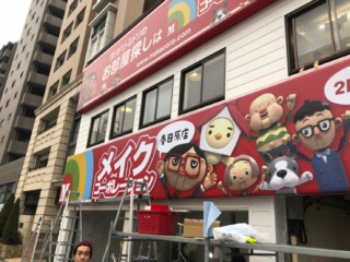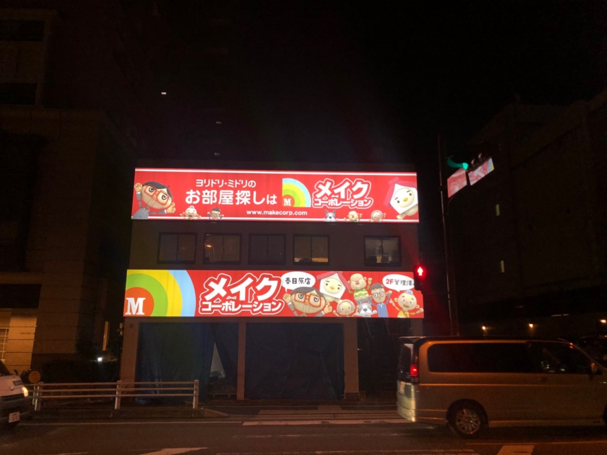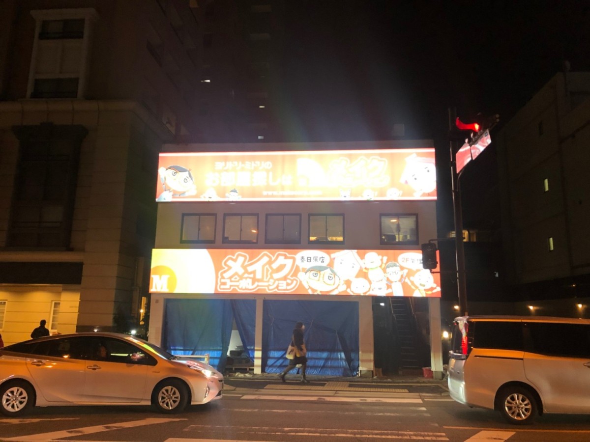 いつも大変お世話になっている、メイクコーポレーション本社様のF.F開閉式ファサードサイン施工を行いました。