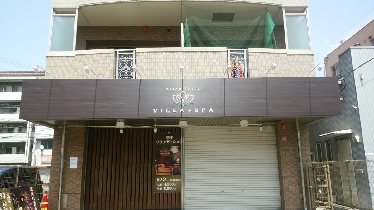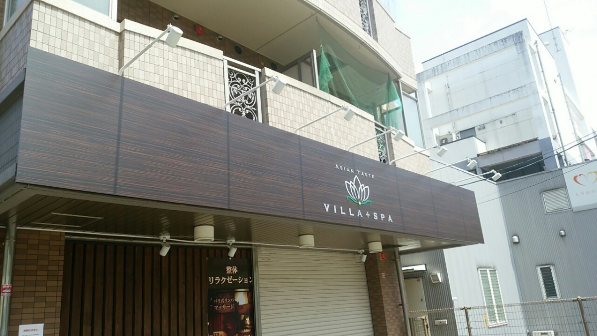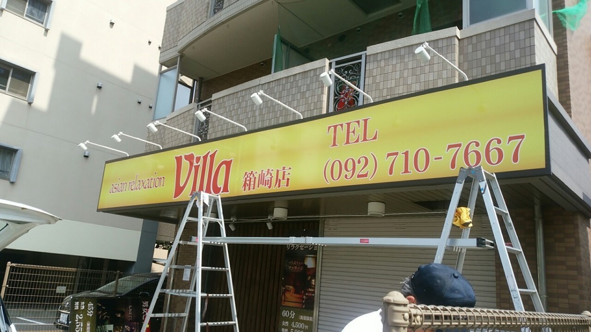 福岡市の、Villa+Spa様サインリニューアル施工を行いました。
