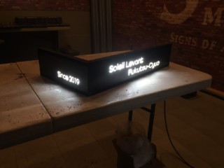 夜でもはっきりと文字が浮かび上がるよう、LEDの配置を考えて製作しました。